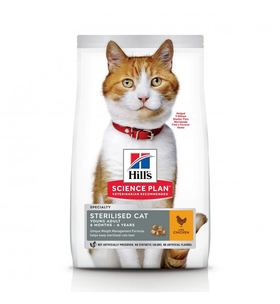 Hill’s Science Plan Sterilised Cat Young Adult met Kip kattenbrokjes hebben een unieke samenstelling voor gewichtscontrole om gesteriliseerde/gecastreerde katten slank te houden. Gemaakt met licht verteerbare ingrediënten van hoge kwaliteit.