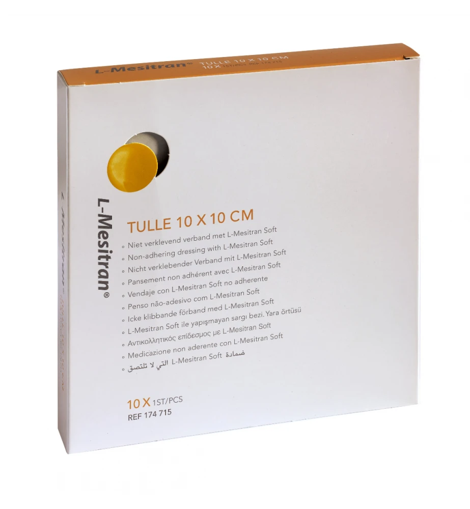 L-Mesitran Tulle met L-Mesitran Honing Soft Gel is een antibacterieel geïmpregneerd polyetheen verband dat niet verkleefd. Wanneer de gel in contact komt met de wond zorgt deze dat het wondvocht aan de wond en omliggende weefsels onttrokken wordt waardoor de wond sneller zal genezen. Het kan gebruikt worden bij de volgende soorten wonden: